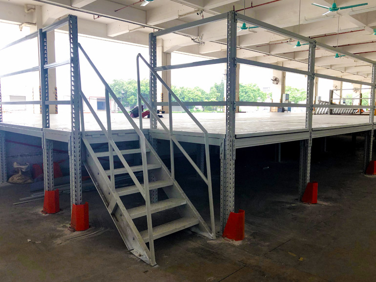 Mezzanine platform multiplies the utility of the warehouse storage space